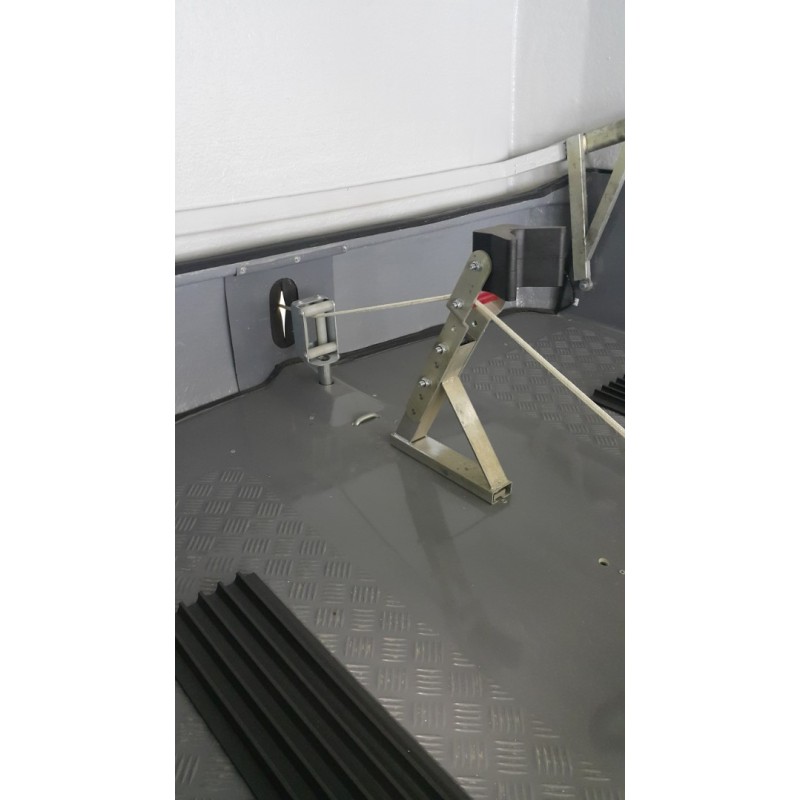 Специализированный защитный элемент для прицепов «СТАЛКЕР». Уловитель устанавливается внутри фургона непосредственно у переднего борта, обеспечивая безопасность при использовании тяговых механизмов.