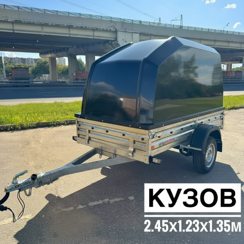 - Универсальная вместимость. Внутренние размеры кузова 2453х1231 мм (длина 2,45 м, ширина 1,23 м) позволяют перевозить габаритные туристические принадлежности, мотоциклы, снаряжение для охоты/рыбалки и различные бытовые грузы. Благодаря высоте кузова под крышкой (1350 мм), прицеп идеально подходит для объемных, но легких грузов.