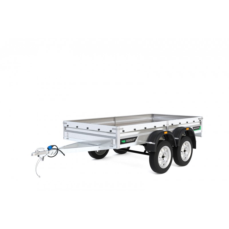Передний и задний борт - откидные. На дно прицепа устанавливается влагостойкая фанера толщиной 9 мм.