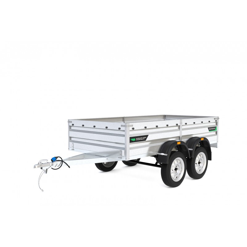 Передний и задний борт - откидные. На дно прицепа устанавливается влагостойкая фанера толщиной 9 мм.