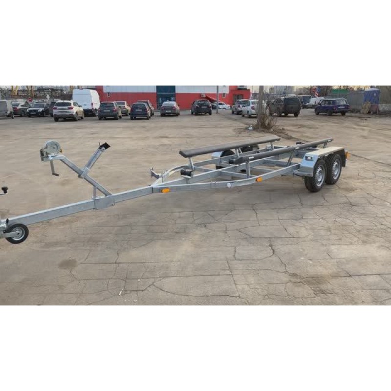 Двухосная модель прицепа производства завода «Вектор» для водной техники (лодок, катеров) длиной до 5.8 м, не требующая наличия в правах открытой категории «Е». Задняя панель модели вместе с фонарями – съемная, что исключает повреждение осветительных элементов при погружении в воду. Модель оборудована специальной «качалкой» для облегчения процесса погрузки/выгрузки плавсредств. Передвижной колесный ход дает возможность образовать оптимальную нагрузку на сцепное устройство с учетом центра тяжести груза.
