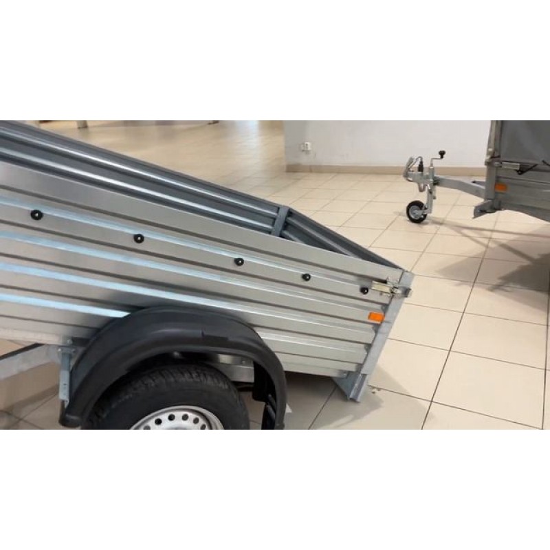 Легковой прицеп 817710 от известного производителя – МЗСА. Модель полностью оцинкована (включая подрамник, раму, борта, кронштейны). На прицепе установлена рессорная подвеска от Al-Ko с амортизаторами. Легкий прицеп имеет надежные откидные борта из рифлёного металла с 4мя стойками и прочное V-образное дышло из металла толщиной 3 мм. Благодаря самосвальным функциям кузова облегчается процесс погрузки и разгрузки. Модель удобна для перевозки сельскохозяйственных, бытовых и иных грузов различного назначения. Данный комплект имеет внутренние размеры: 1,8х1,23х1,27м (ДхШхВ)