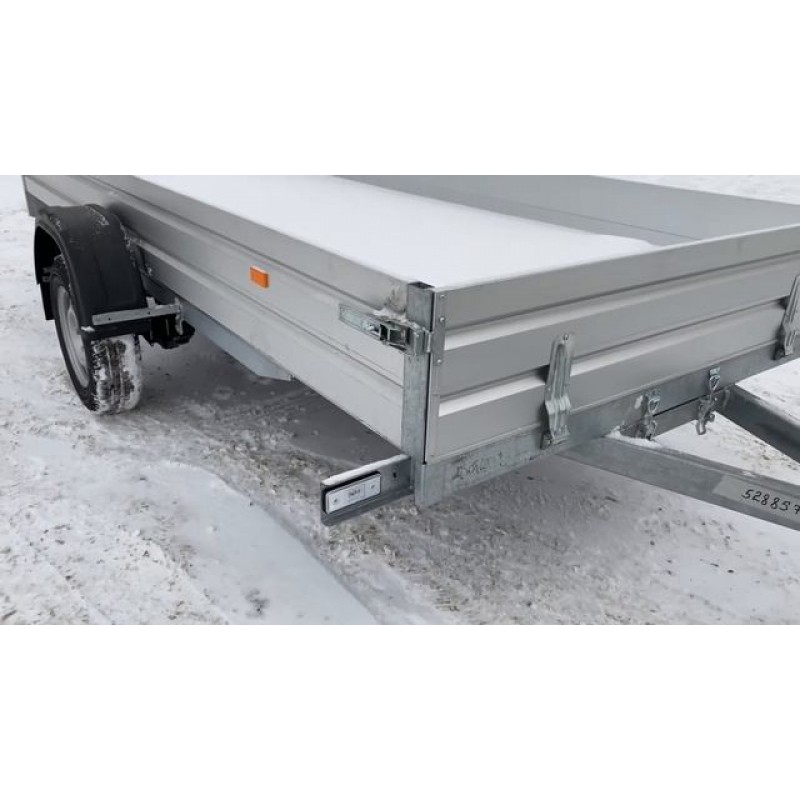 Легковой прицеп с алюминиевыми бортами и светодиодными фонарями.