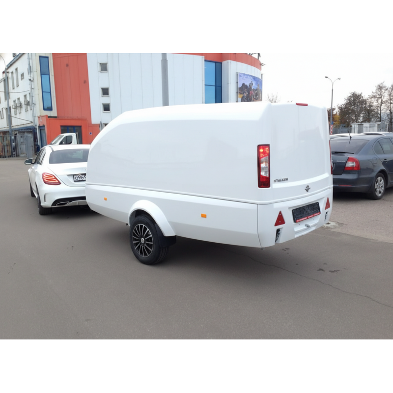 Сталкер в классическом белом цвете — эталон практичности и стиля от компании «Технология Движения». Светлый корпус из армированного стеклопластика не только эффектно смотрится, но и меньше нагревается под прямыми солнечными лучами, поддерживая оптимальный микроклимат внутри фургона.