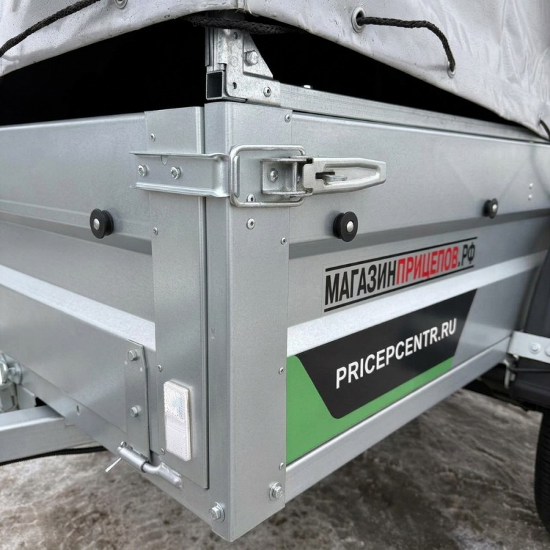 Для удобства погрузки и перевозки длинномерных грузов передний и задний борта выполнены откидными. Пол прицепа защищен влагостойкой фанерой толщиной 6 мм, устойчивой к износу и осадкам.
