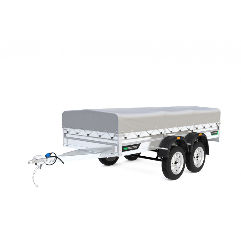 - Двухосная надежность: две оси с 4-х листовыми рессорами гарантируют плавный ход и равномерное распределение веса, предотвращая раскачку прицепа.
