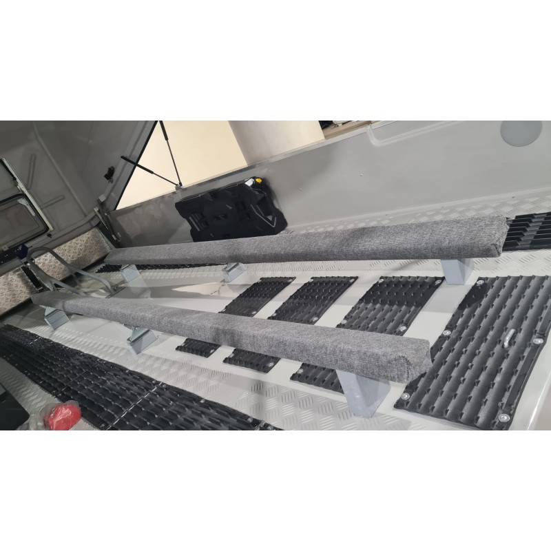 - Бережное хранение: два регулируемых бруса длиной 2,5 метра обиты мягким ворсовым покрытием, которое защищает корпус гидроцикла от царапин и потертостей.