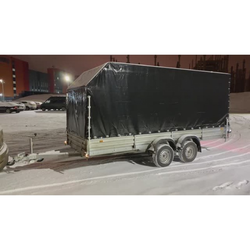 - Водонепроницаемый тент с двухсторонней пропиткой ПВХ (плотность 600–630 г/м²) с четырьмя распашными клапанами.